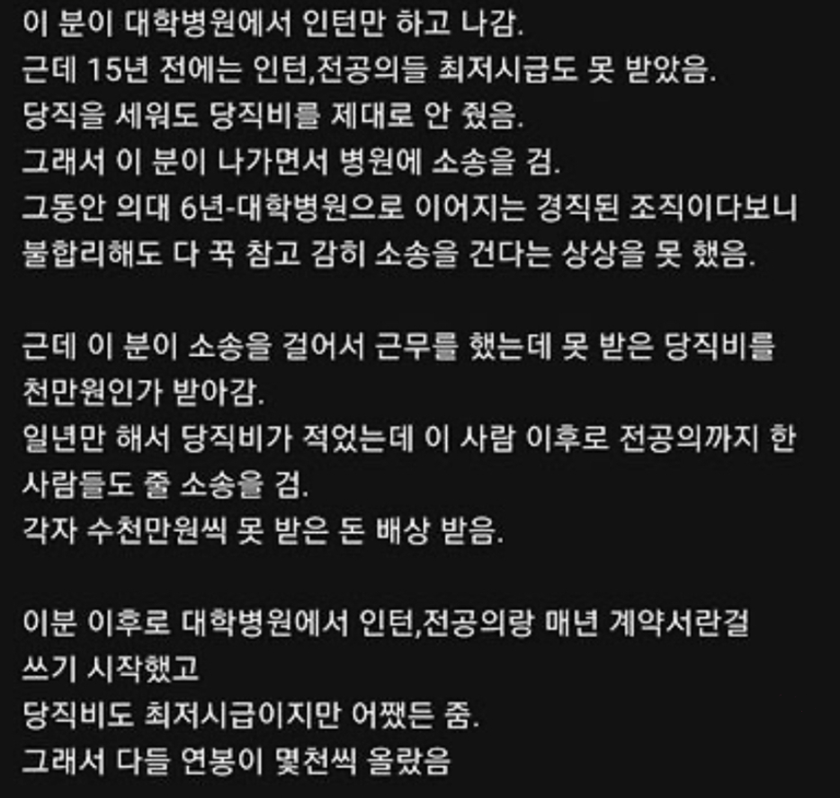 25기 광수 소송 승리의 이야기는 의사 사회에서 전설로 남아 있습니다. 대학병원에서 인턴으로 근무하던 2010년, 그는 야간과 휴일 근무 수당을 받지 못하자 병원을 상대로 소송을 제기했어요.